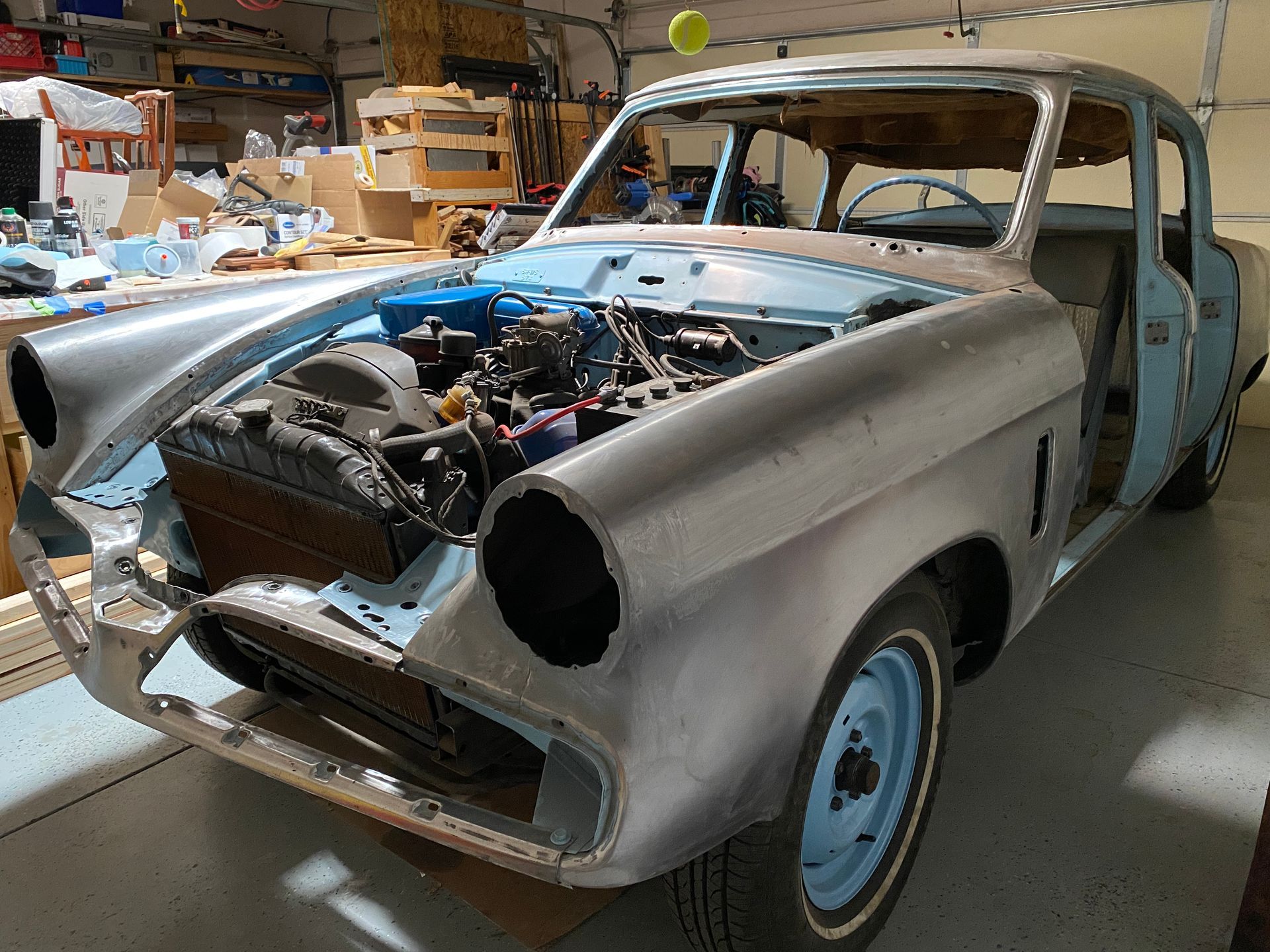 The pictures show the Commander before restoration really began, and during the process. This was an “engine in” restoration process. I won’t mention the cost, but it was slightly less than I had budgeted, but more than the car is worth. I definitely didn’t do it for the investment.